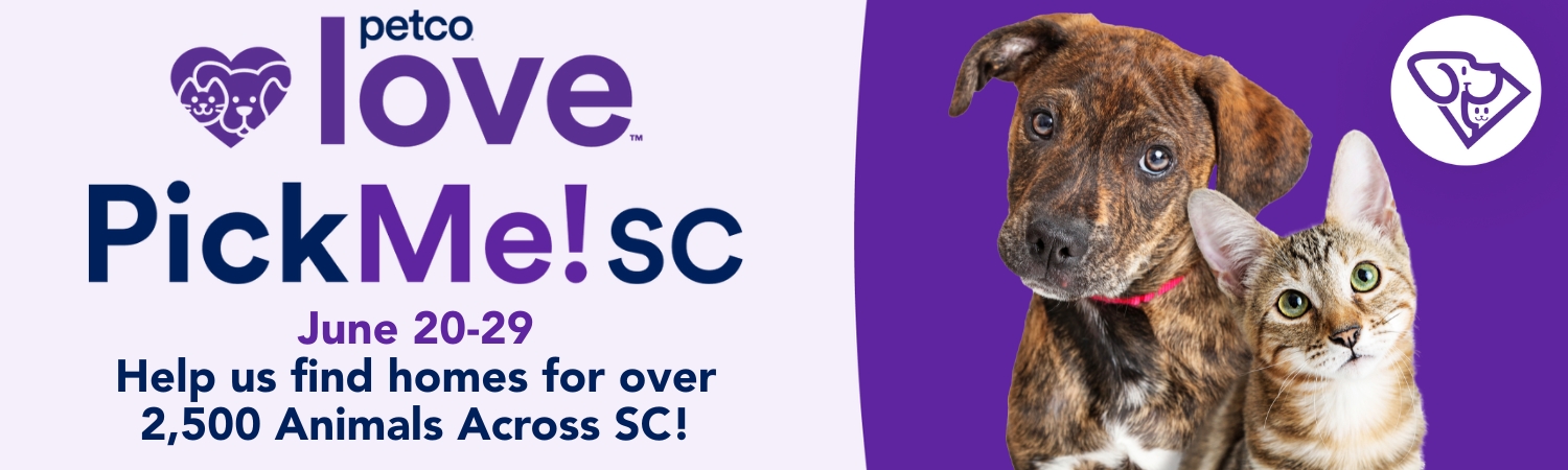 MARK YOUR CALENDAR & SAVE A LIFE!From June 20–29, come meet your new best friend. Whether you visit a local shelter or a Petco pet care center, you could be the reason a dog wags their tail again or a cat purrs with happiness.Remember to bring a leash or carrier when adopting. Some locations will have these items for purchase.For photos, event updates, and a list of participants, visit PickMeSC.org.